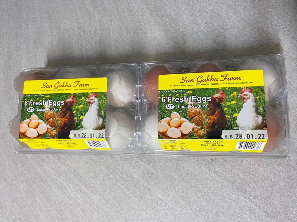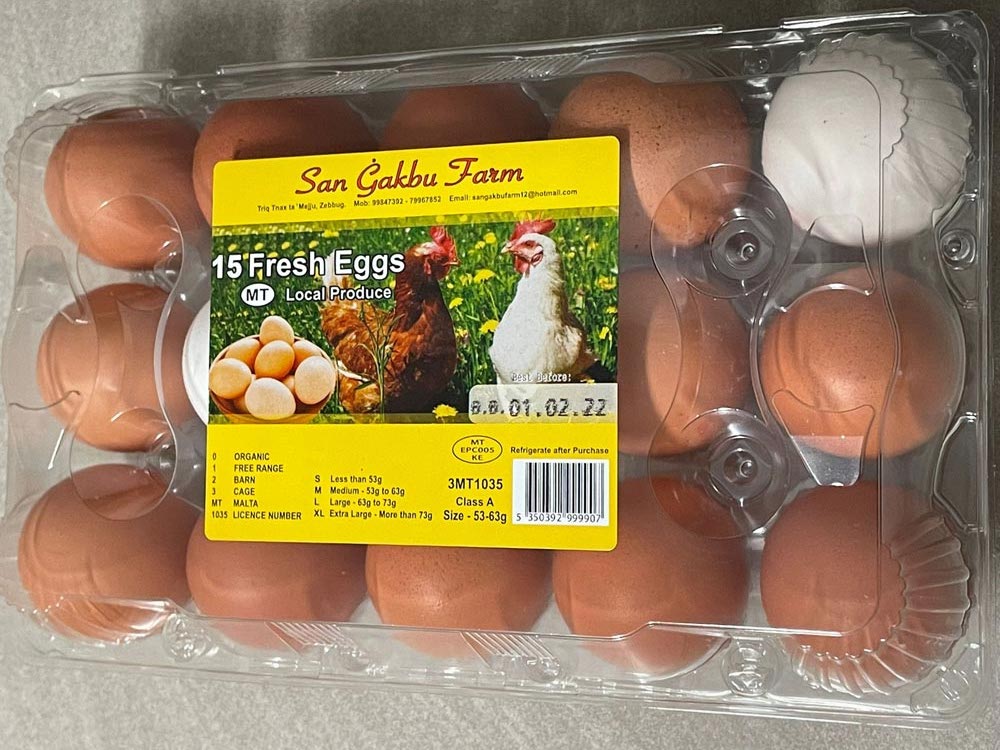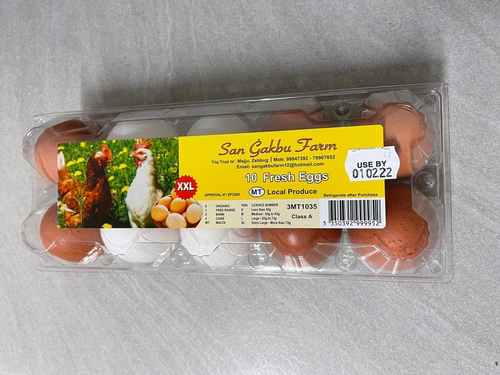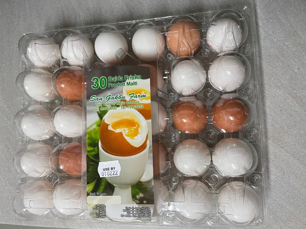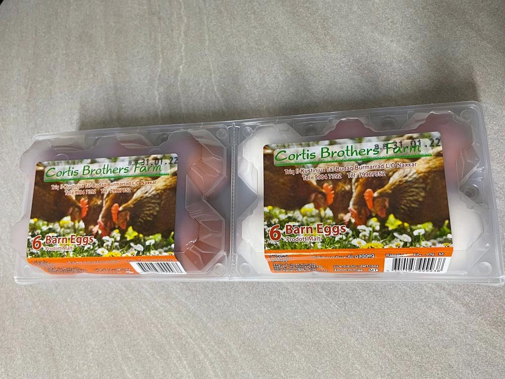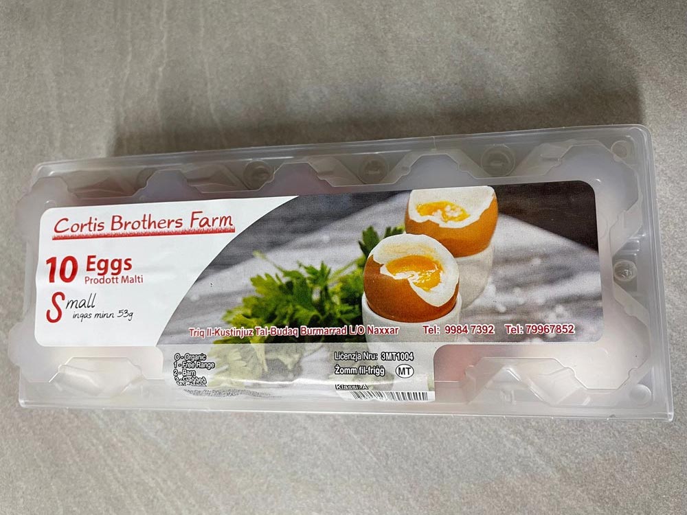 Our eggs range in size — you can choose to purchase a different variety of egg sizes, from small to large, along with box sizes. You can choose your box size, with the minimum number available for orders being 30x10 egg cartons.